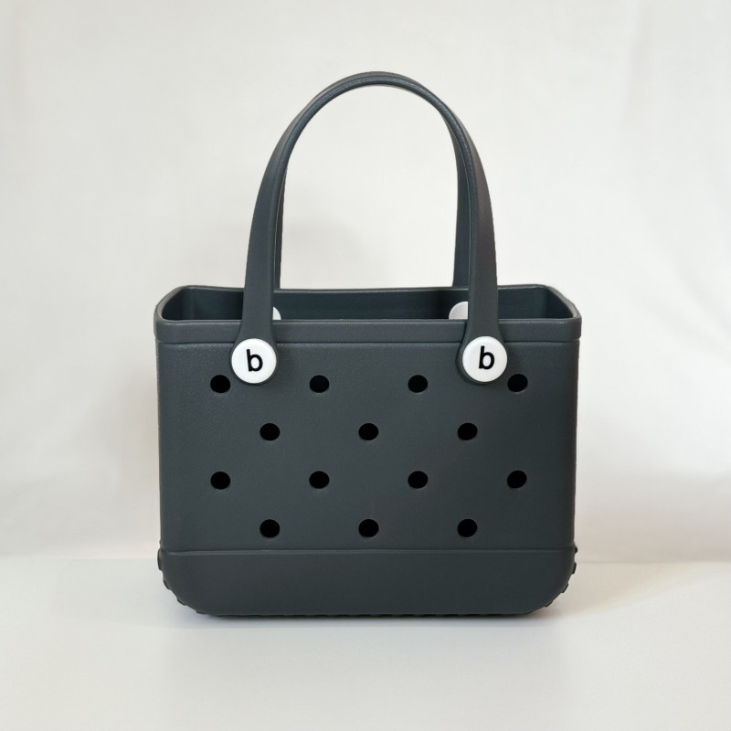 هذه الحقيبة الأنيقة هي الرفيق المثالي لكل الطلعات! مصنوعة من مواد متينة وعصرية مقاومة للماء وسهلة التنظيف، وتأتي بعدة ألوان ساحرة وبمقاسين. تصميمها العصري المزود بثقوب لا يوفر فقط شكلاً جميلاً بل يجعلها خفيفة الوزن وسهلة الحمل، كذلك يمكنكم إضافة الـ(تشارمز) لتبدو أكثر أناقة.