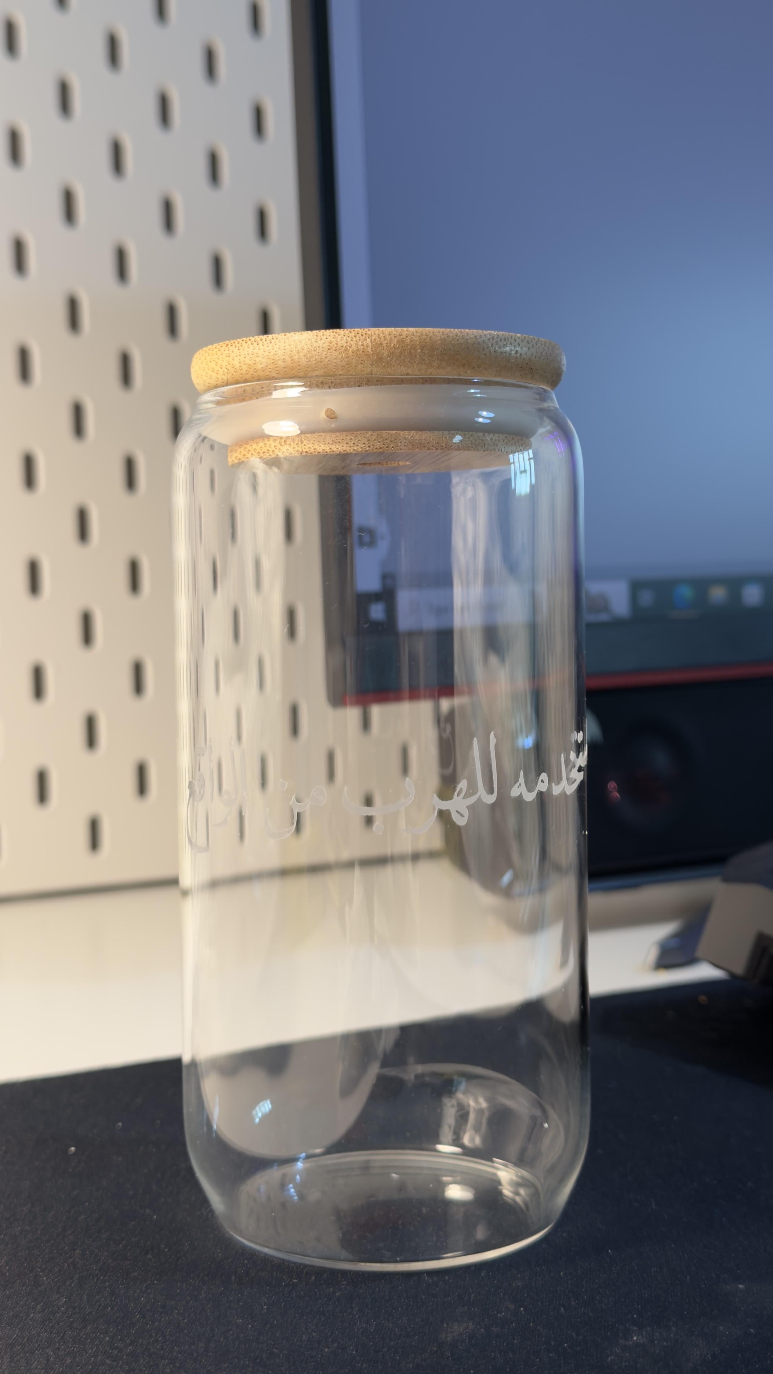 الكوب يأتي مع غطاء مصنوع من البامبو بالإضافة لمصاص مصنوع من الزجاج